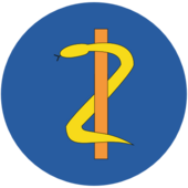 Sanitätsoffiziere bzw. Sanitätsoffizieranwärter den Äskulapstab mit Schlange, Zahnärzte ebenfalls die Schlange am Stab, jedoch nur mit zwei Windungen des Schlangenkörpers und Apotheker nur die aus einer flachen Schale nach oben gerichtete Schlange.